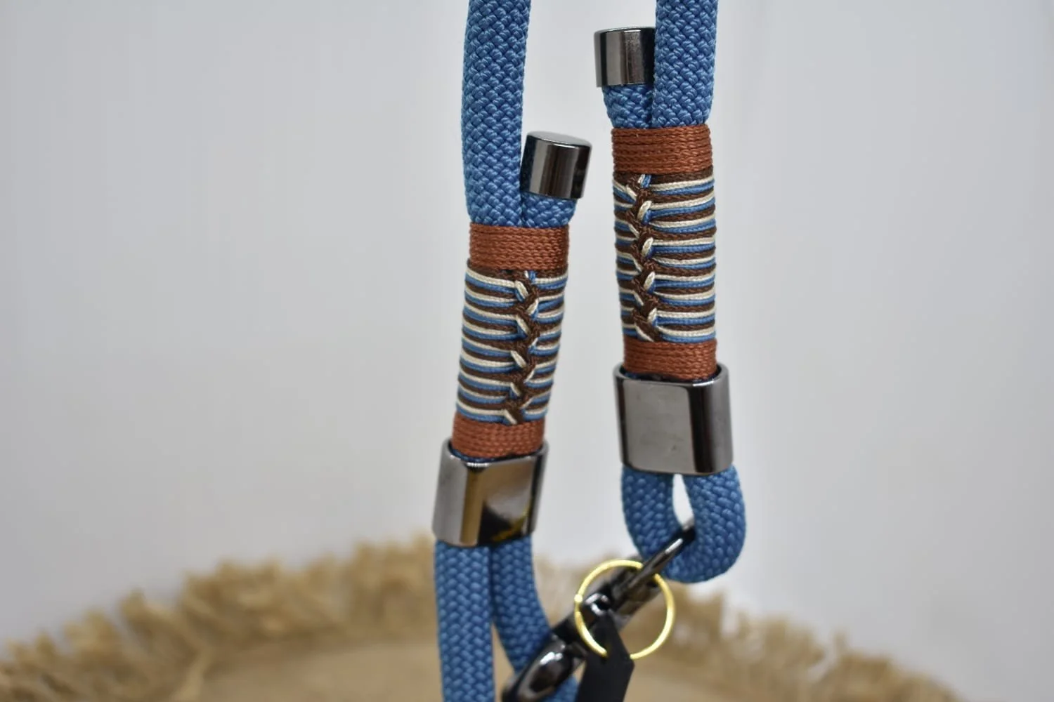 Biothane est un matériau d’aspect ressemblant au cuir déclinable en plusieurs couleurs, résistant au froid, à l’eau et au soleil. (Résistance entre 350kg à 678kg à la charge de rupture)